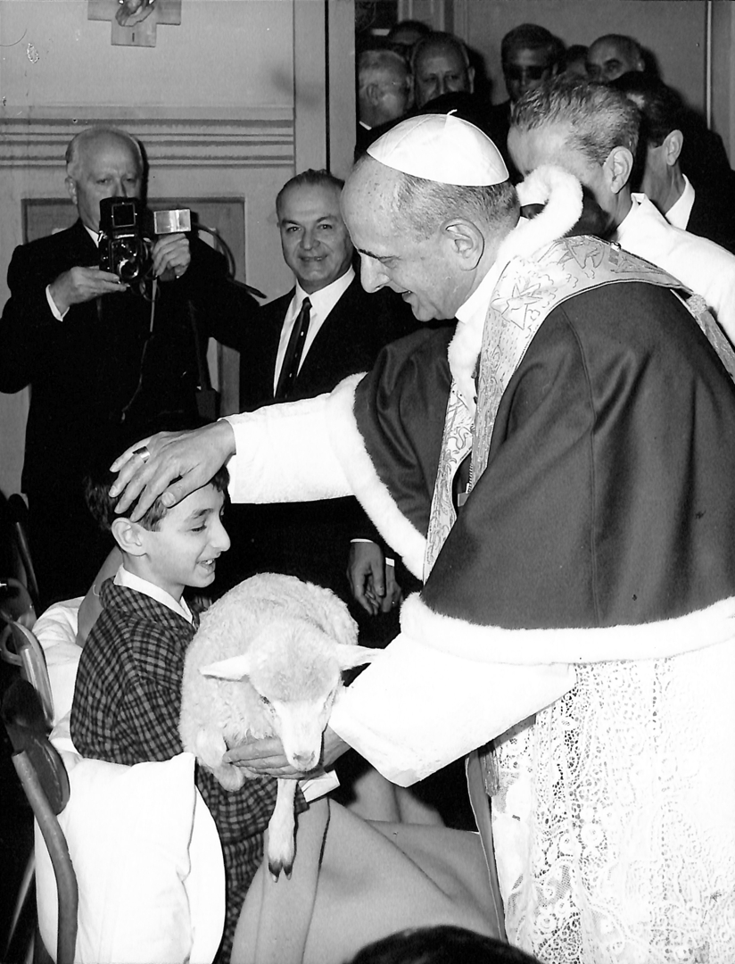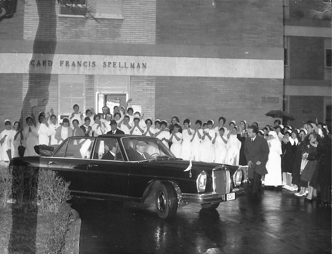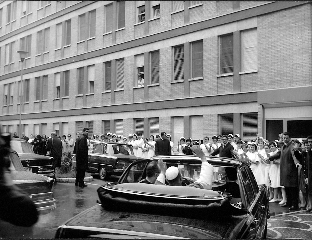 Il Papa Paolo VI all'ingresso, saluta il personale dell'Ospedale