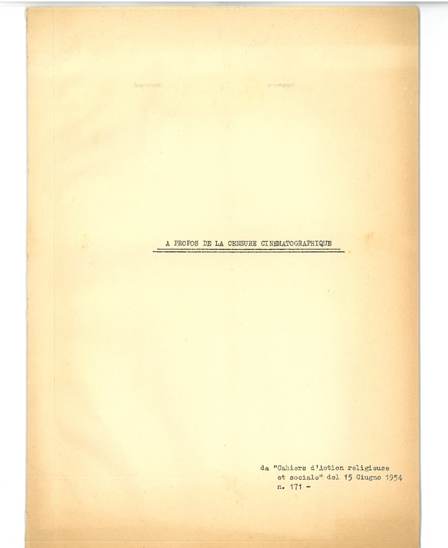 "A propos de la censure cinematographique", da 'Cahiers d'Action Religieuse et Sociale' del 15 giugno 1954, n. 171