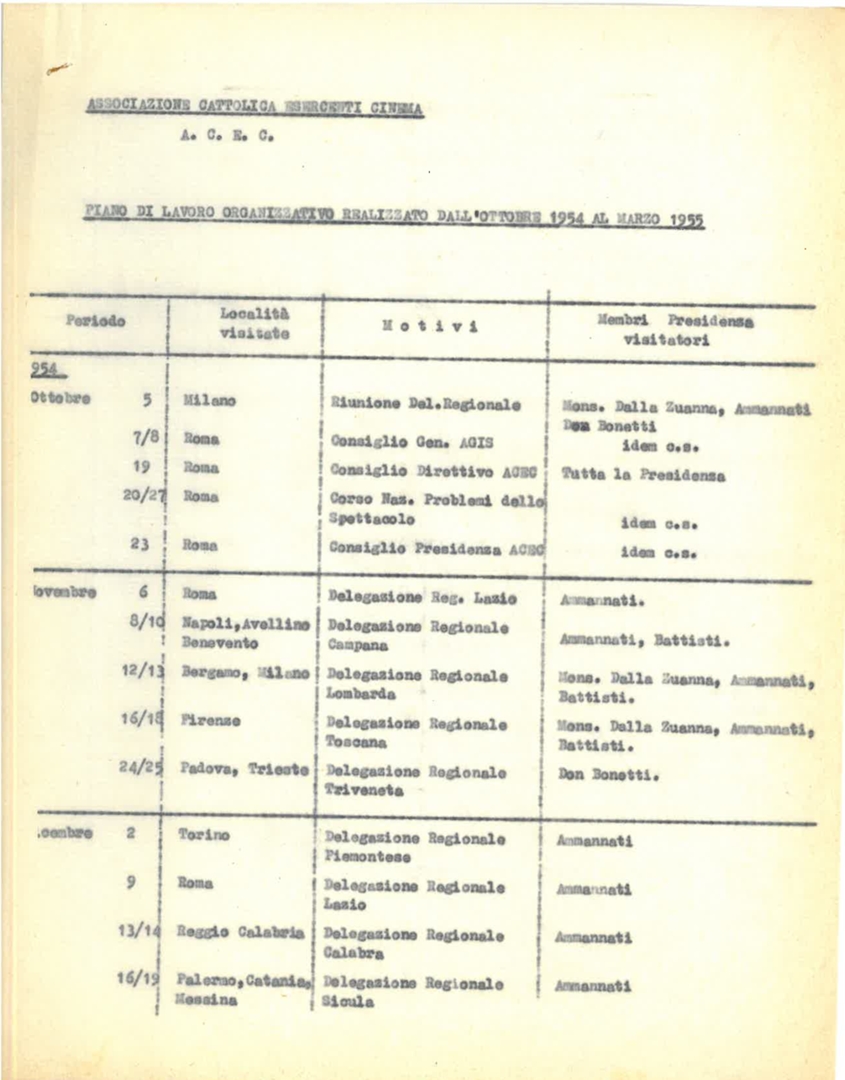 "Piano di lavoro organizzativo realizzato dall'ottobre 1954 al marzo 1955", a cura dell'ACEC