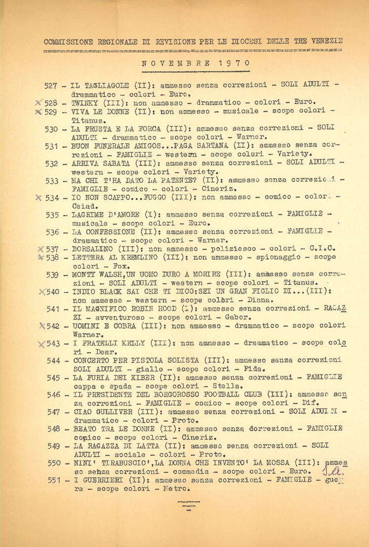 Classificazione di film, a cura della Commissione regionale di revisione per le diocesi delle Tre Venezie