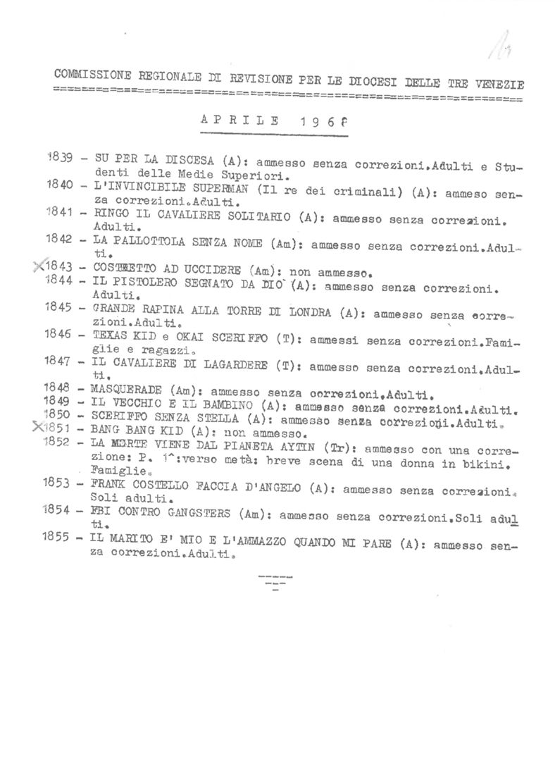 Classificazione di film, a cura della Commissione regionale di revisione per le diocesi delle Tre Venezie
