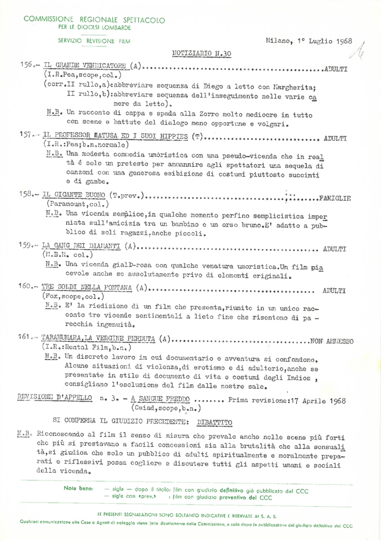 Commissione regionale spettacolo per le diocesi lombarde. Servizio revisione film. Notiziario, nn. 30-33
