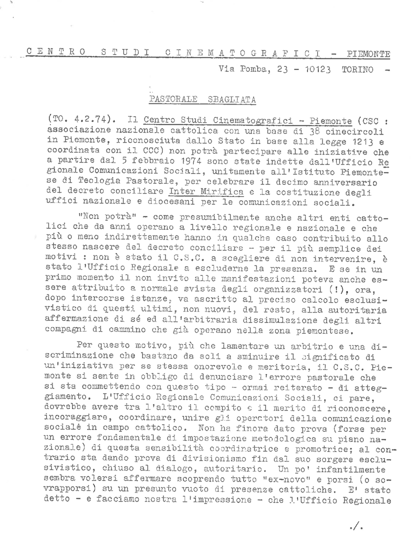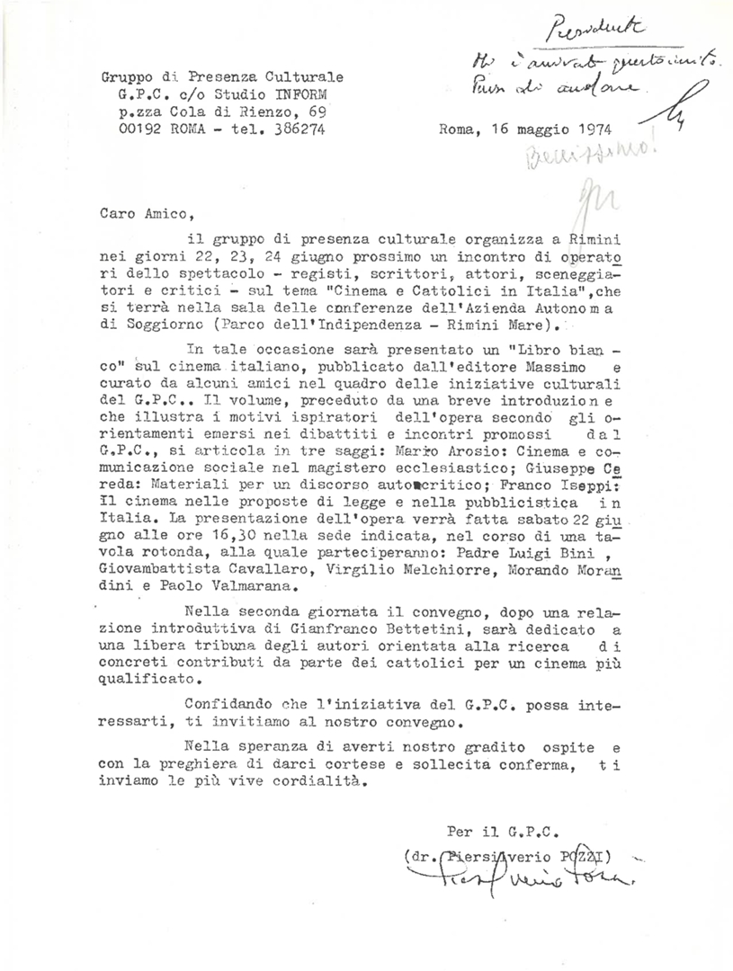 I cattolici e il cinema in Italia tra gli anni '40 e gli anni '70 ACEC - Associazione cattolica esercenti cinema Consiglio di presidenza 1973-1977