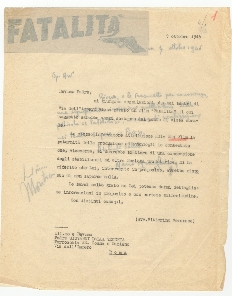 Lettera non firmata a destinatario non indicato, su carta intestata della Presidenza della società di produzione cinematografica Universalia