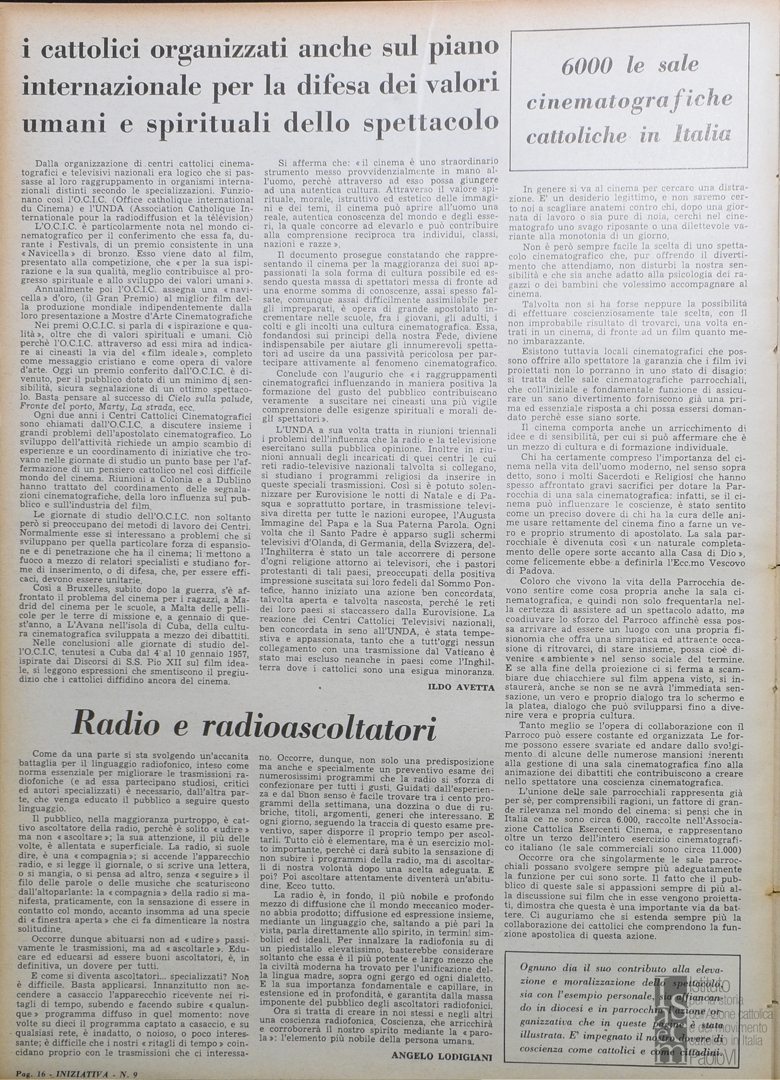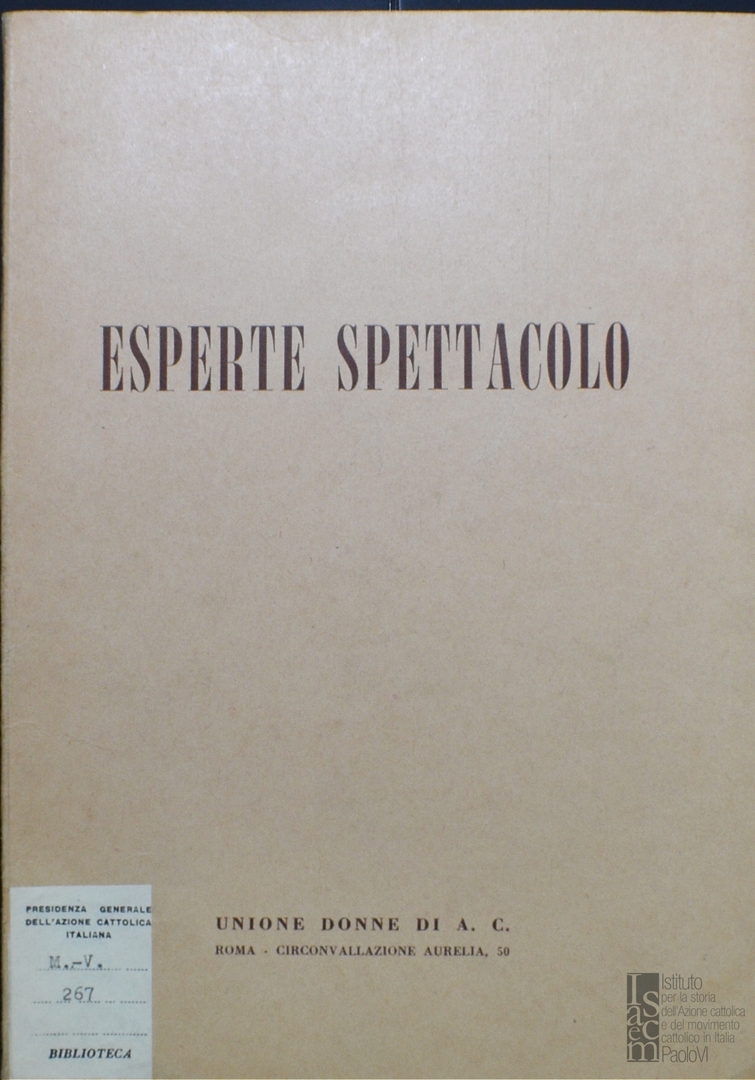 1.Lettera enciclica di S.S. Pio XII circa la cinematografia, la radio, la televisione, Miranda Prorsus. 2. Degli spettacoli cinematografici, lettera enciclica