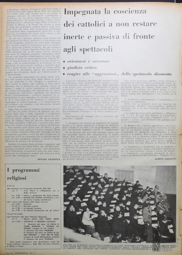I cattolici organizzati anche sul piano internazionale per la difesa dei valori umani e spirituali dello spettacolo