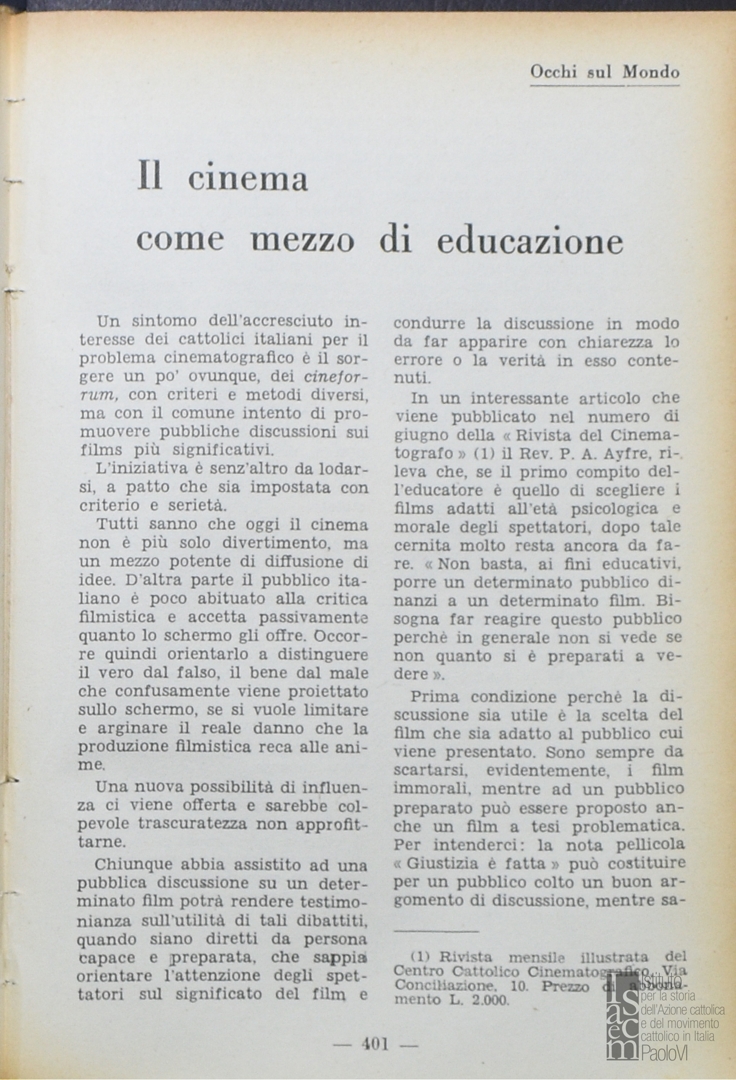 Dossier. Un problema di attualità : la cinematografia scolastica