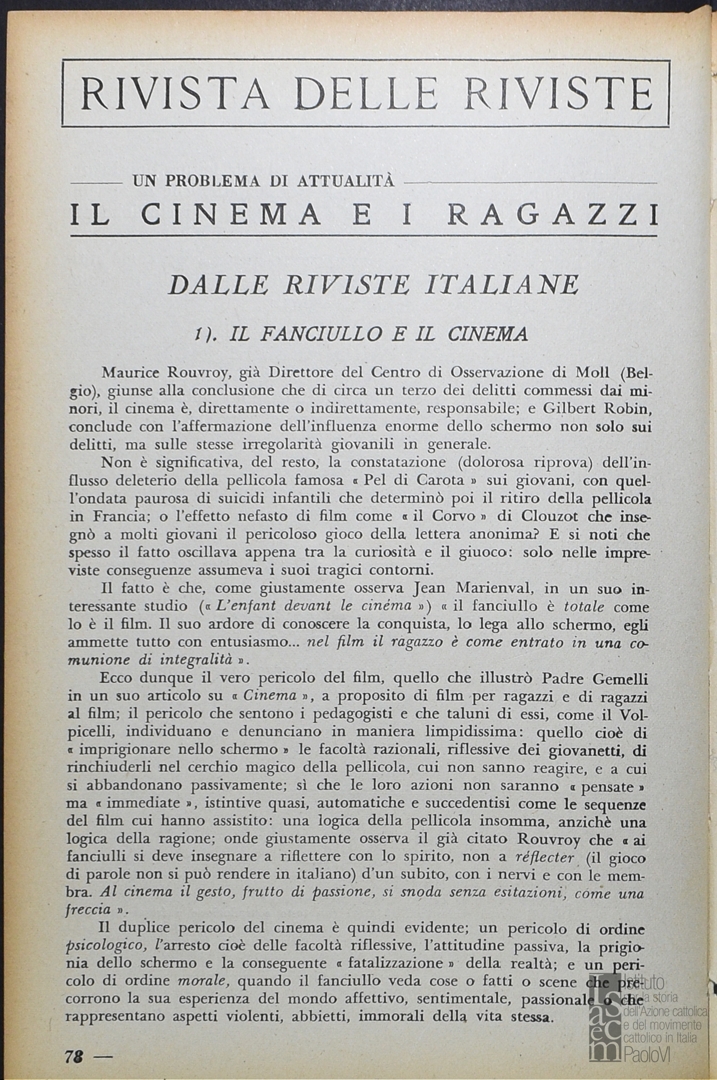 Dossier. Un problema di attualità: il cinema e i ragazzi