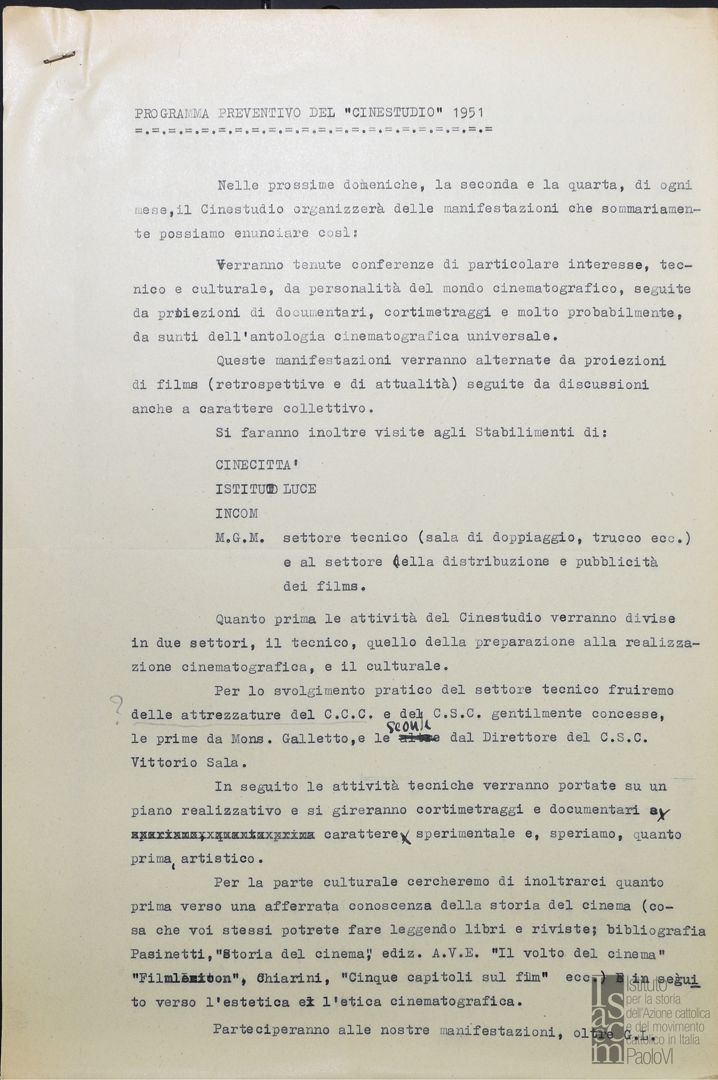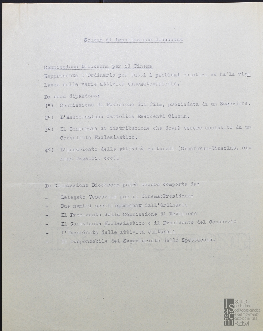"Centro cattolico cinematografico. Promemoria per il presidente"