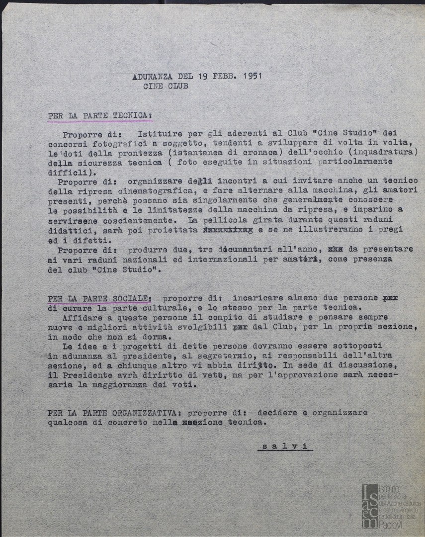 Richiesta di adesione del Club "Cine-studio" di Roma alla Federazione nazionale Circoli del cinema