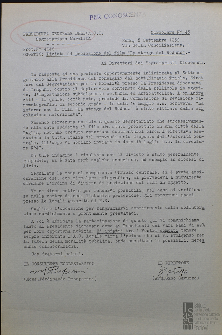 Rapporti con il Centro cattolico cinematografico e con la Federazione italiana dei circoli del cinema