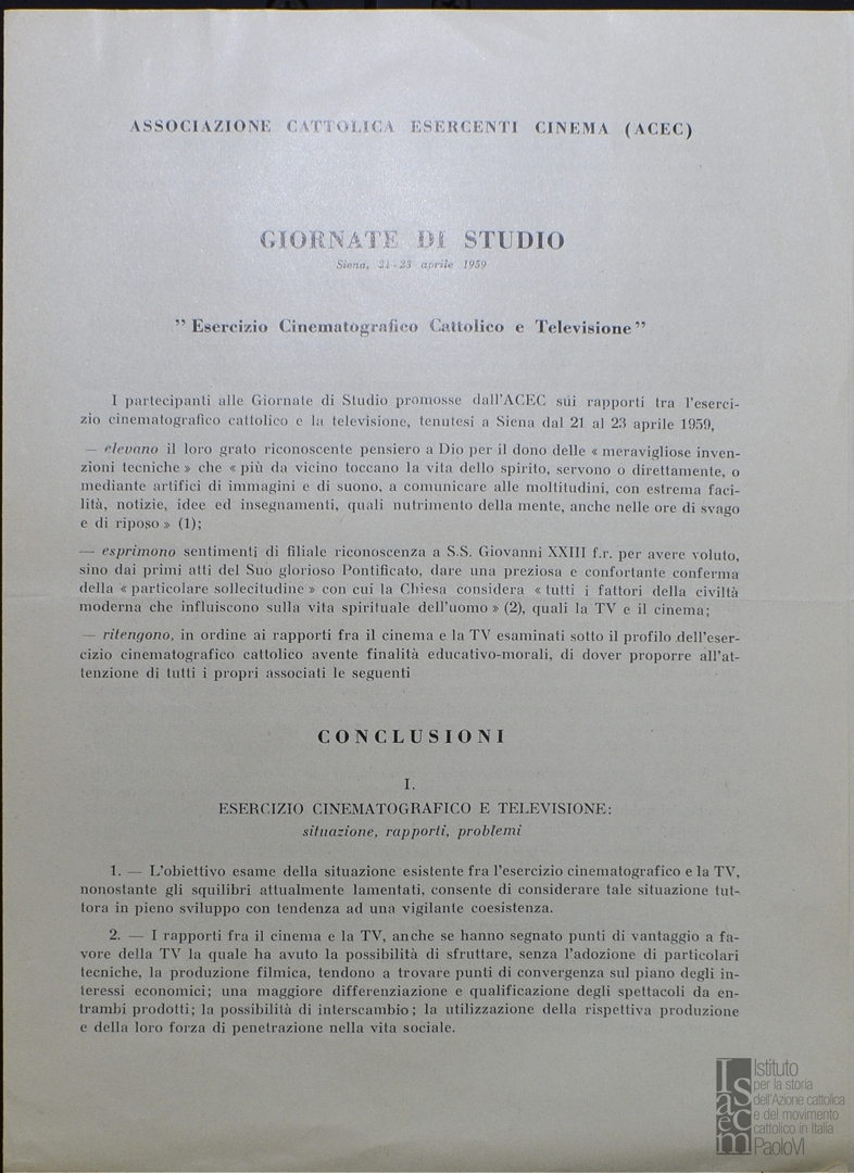 Giornate di studio "Esercizio cinematografico cattolico e televisione"