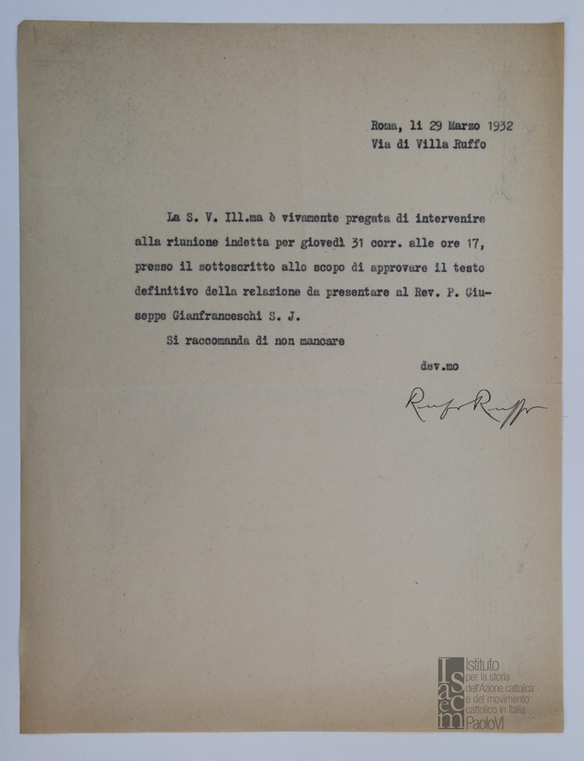 Lettera di Rufo Ruffo della Scaletta a don Giuseppe Gianfranceschi