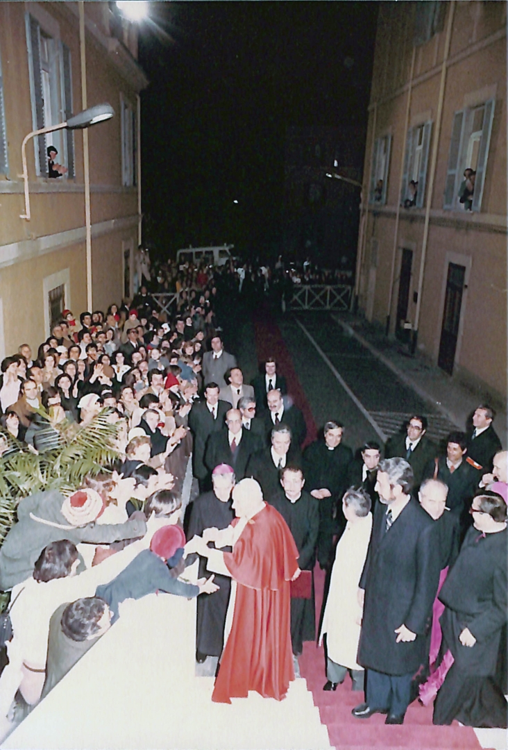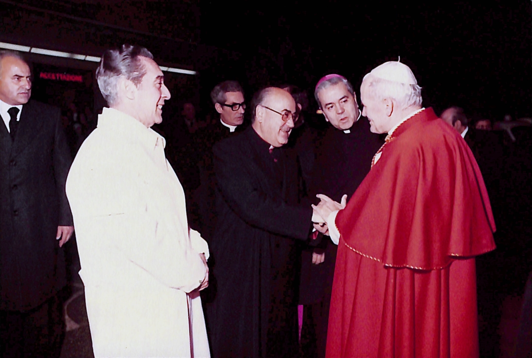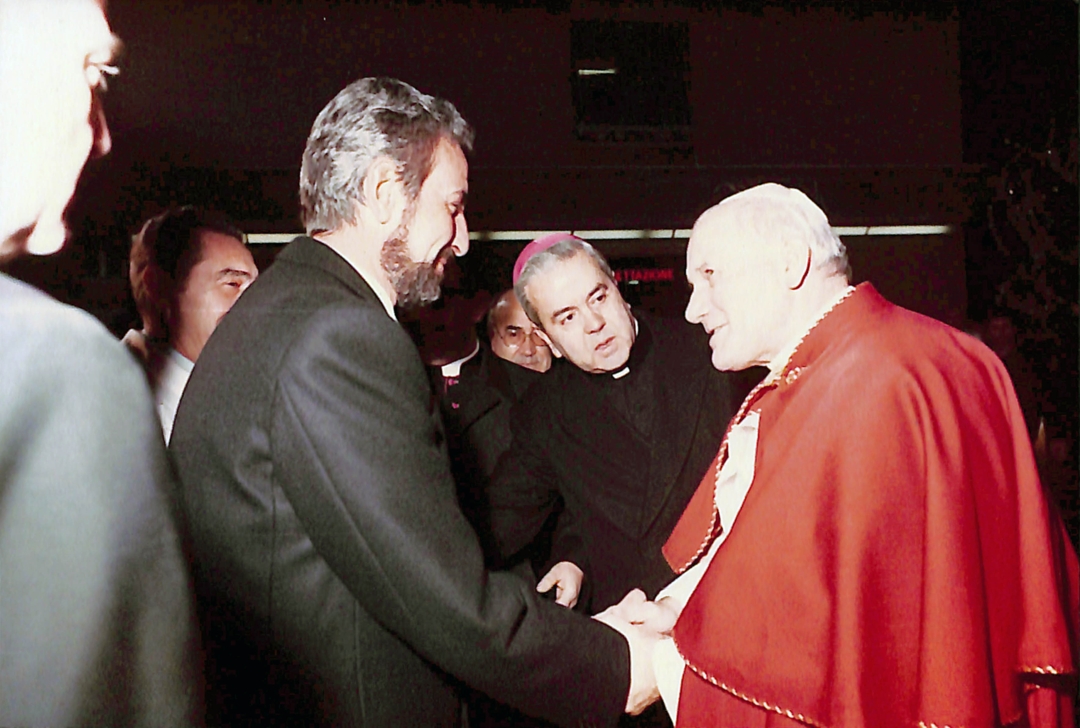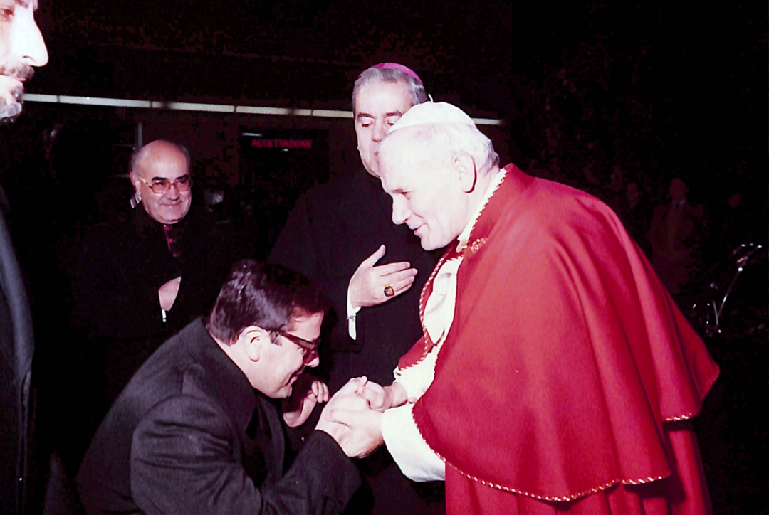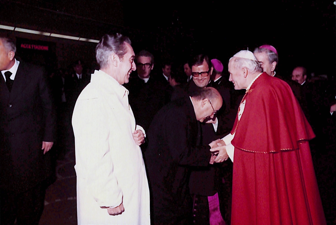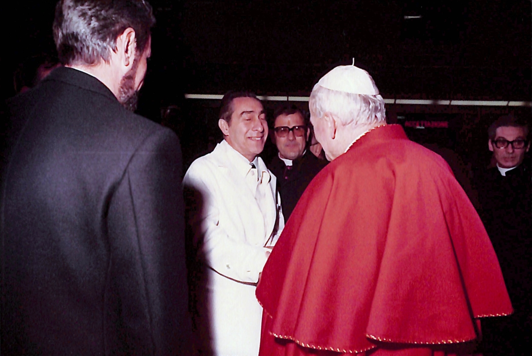 Marcello Sacchetti accoglie Giovanni Paolo II al suo arrivo davanti al Padiglione Pio XII