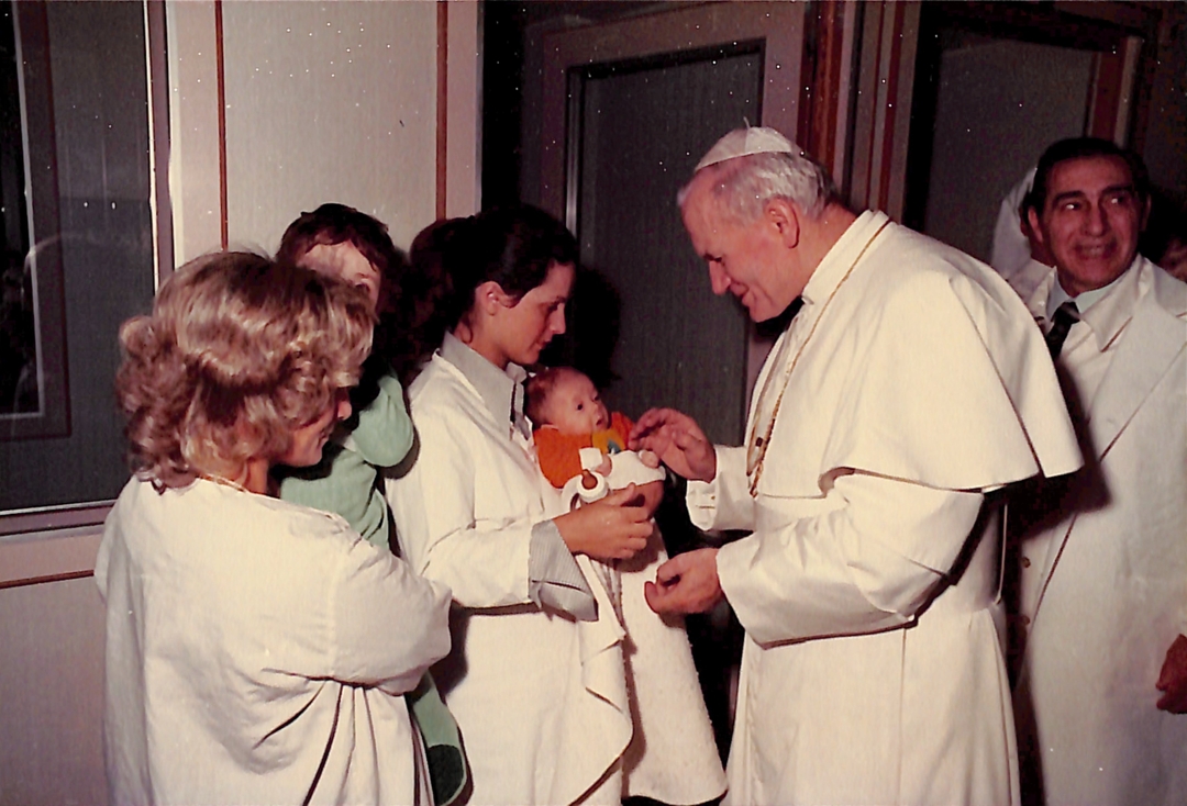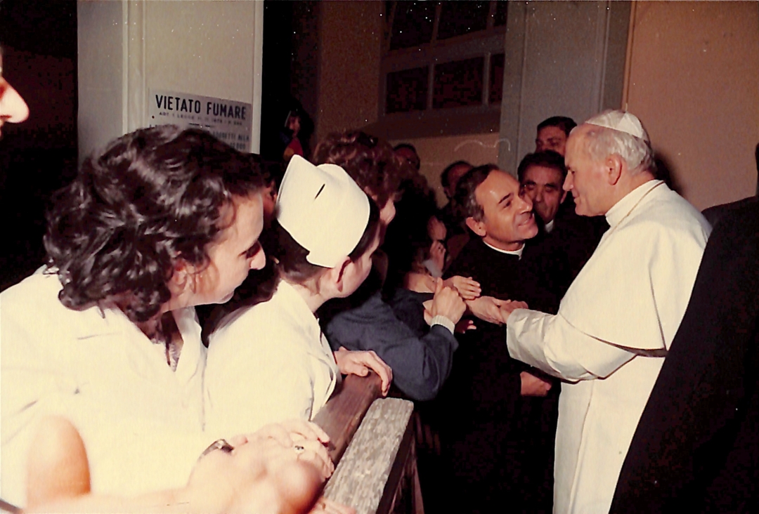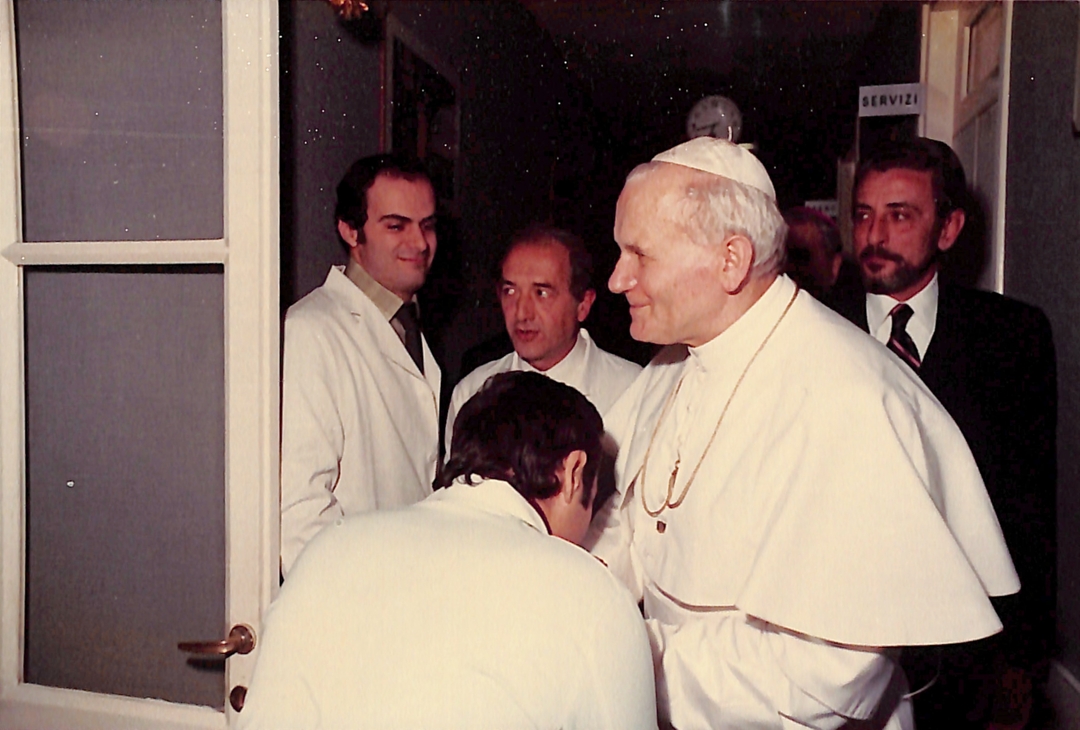 Giovanni Paolo II all'ingresso di una sala di degenza del Padiglione Sant'Onofrio
