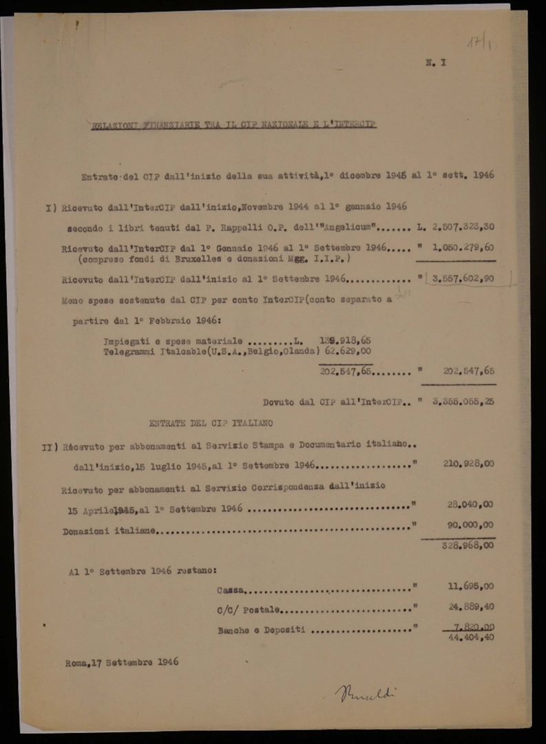 "Relazioni finanziarie tra il CIP nazionale e l'Intercip"