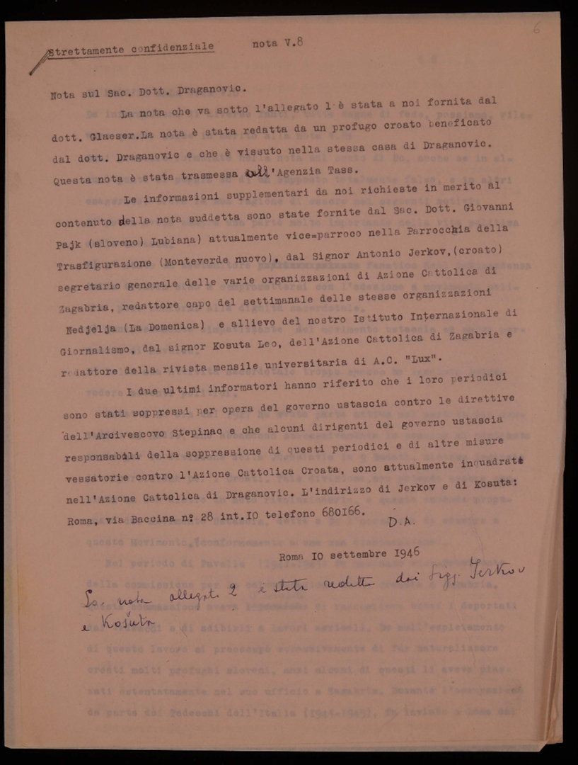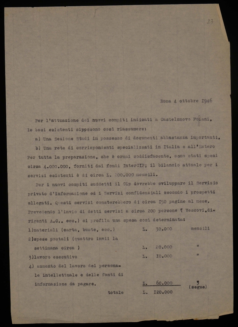 Nota a firma di padre Antonio De Angelis e di A. Rinaldi, rispettivamente consigliere ecclesiastico generale e amministratore del Centro informazioni Pro Deo - CIP