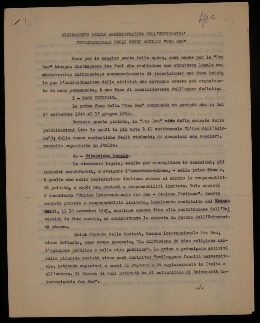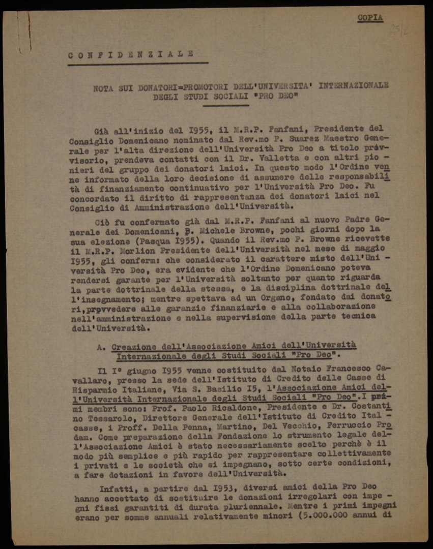 "Nota sui donatori-promotori dell'Università internazionale degli studi sociali Pro Deo", a cura di padre Félix Morlion