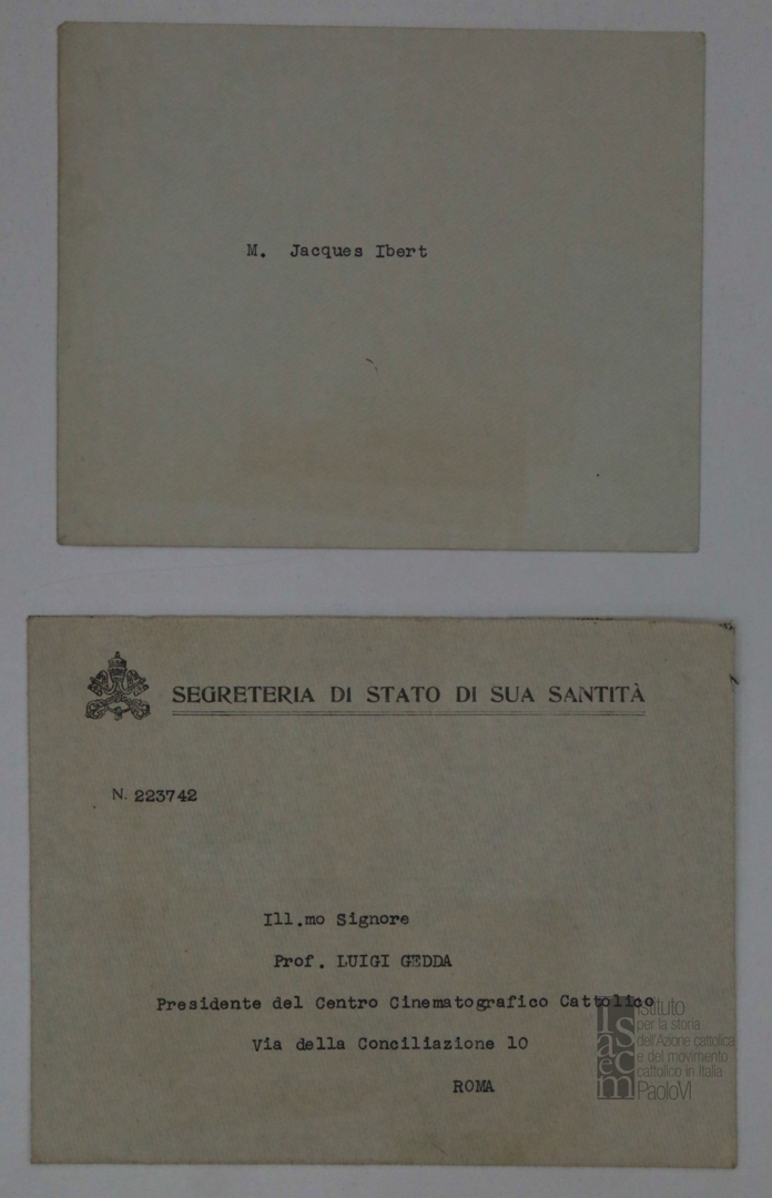 Lettera di mons. Giovanni Battista Montini, sostituto alla segreteria di Stato di Sua Santità, a Jacques Ibert