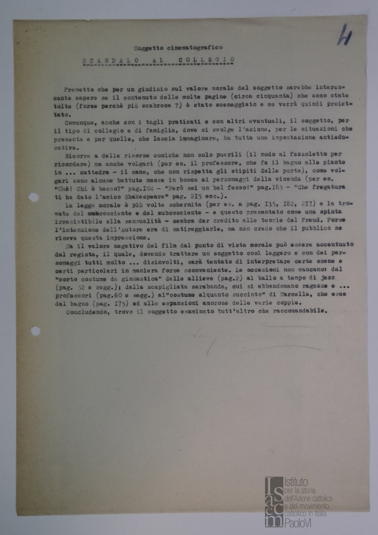 "Soggetto cinematografico 'Scandalo al collegio'"