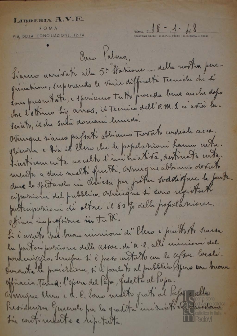 Lettera di Bartolo Paschetta, della libreria AVE di Roma, a Luigi Palma, segretario generale del Centro nazionale di Azione Cattolica di Roma