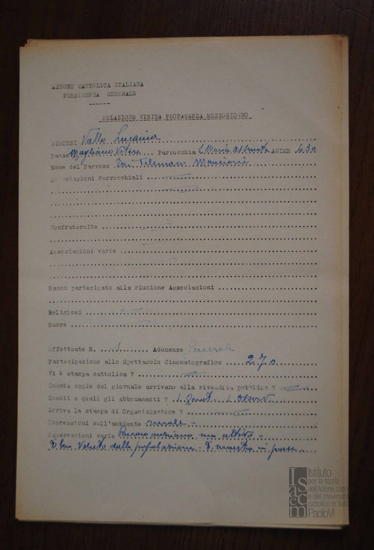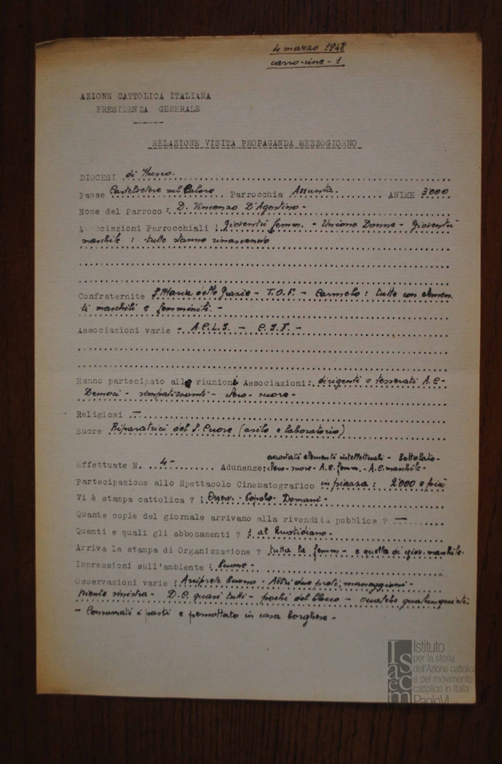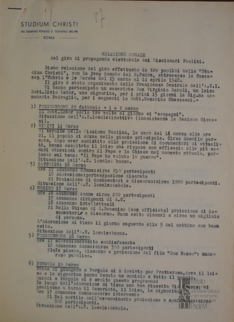 "Relazione morale del giro di propaganda elettorale dei Missionari Paolini"