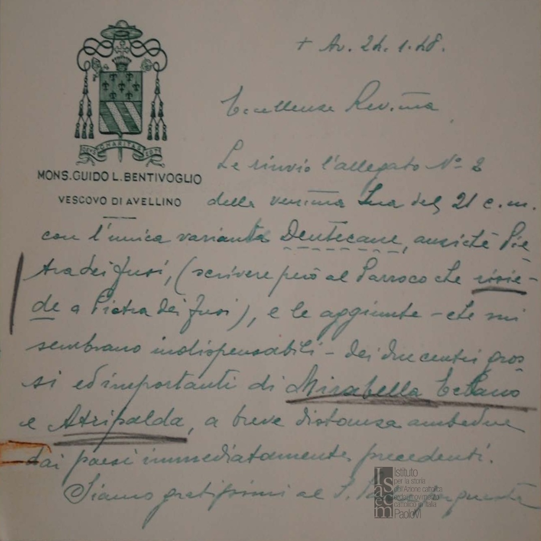 Lettera di mons. Guido L. Bentivoglio, vescovo di Avellino