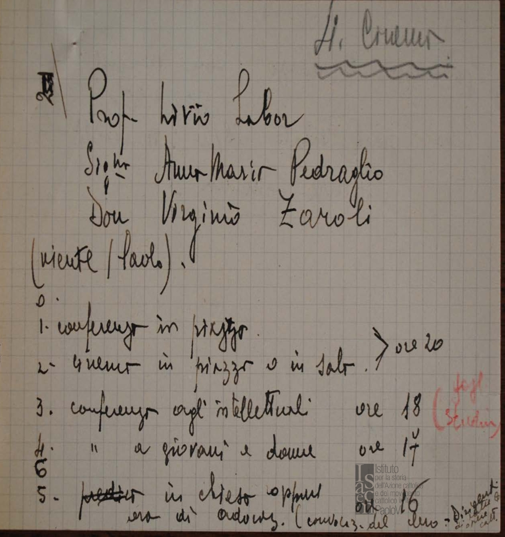 Lettera non firmata della Presidenza generale dell'Azione cattolica italiana - ACI, al prof. Giuseppe Lazzati, incaricato per l'Ufficio di propaganda per l'Azione cattolica