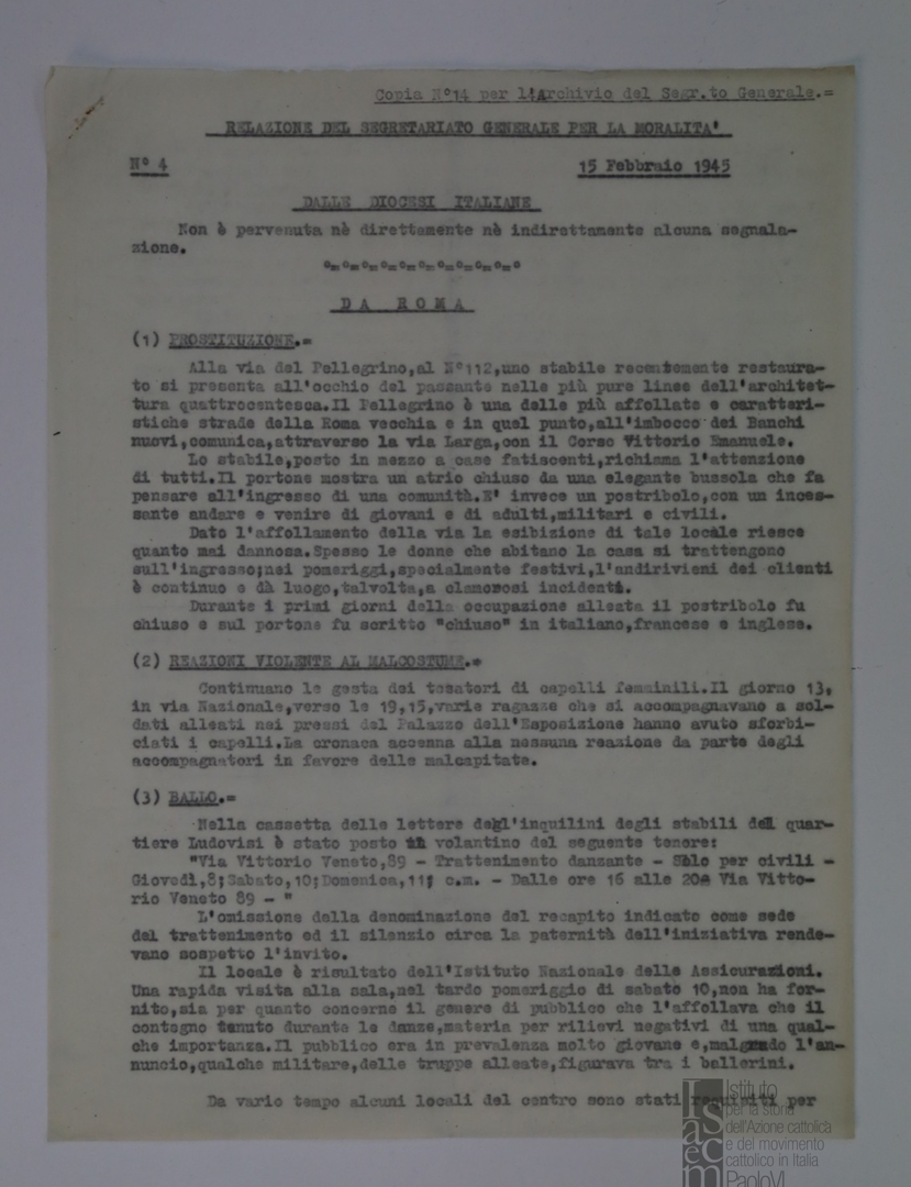"Relazione del Segretariato Generale per la Moralità. Nr. 4"