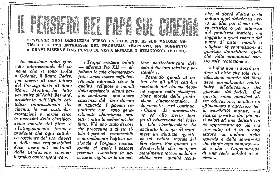 I cattolici e il cinema in Italia tra gli anni '40 e gli anni '70
