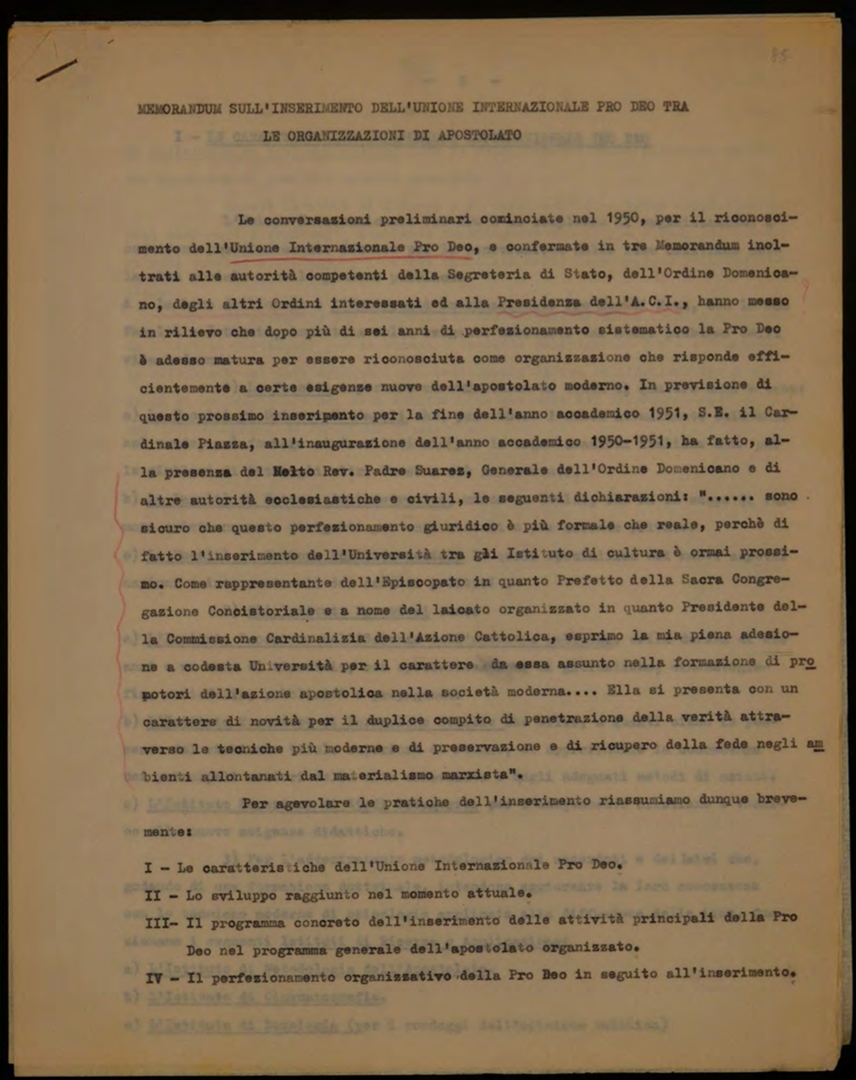 "Memorandum sull'inserimento dell'Unione internazionale Pro Deo tra le organizzazioni di apostolato"