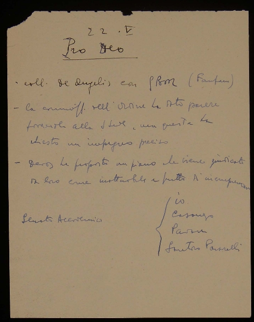 "Cronistoria della Pro Deo" e "Cronistoria dei rapporti tra la Pro Deo, l'Ordine dei padri domenicani e la Segreteria di Stato"