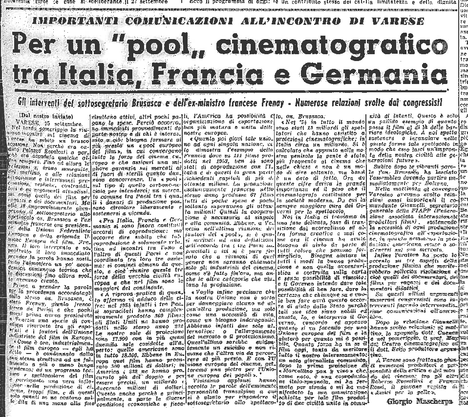 "Per un pool cinematografico tra Italia, Francia e Germania"