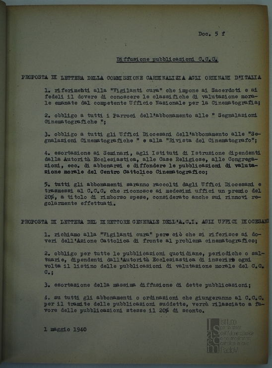 Lettera di G. Gentili a Paolo Salviucci, segretario del Centro cattolico cinematografico - CCC
