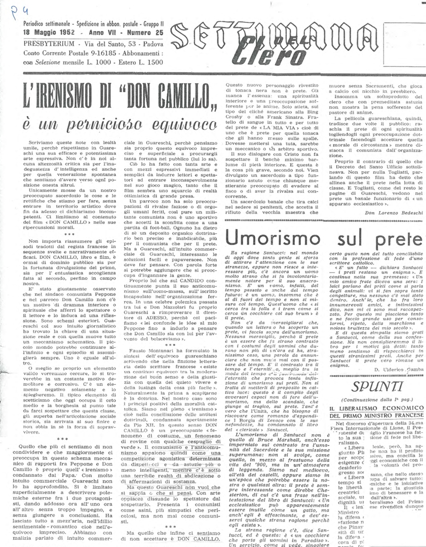 "Il don Camillo sarà messo all'indice?"