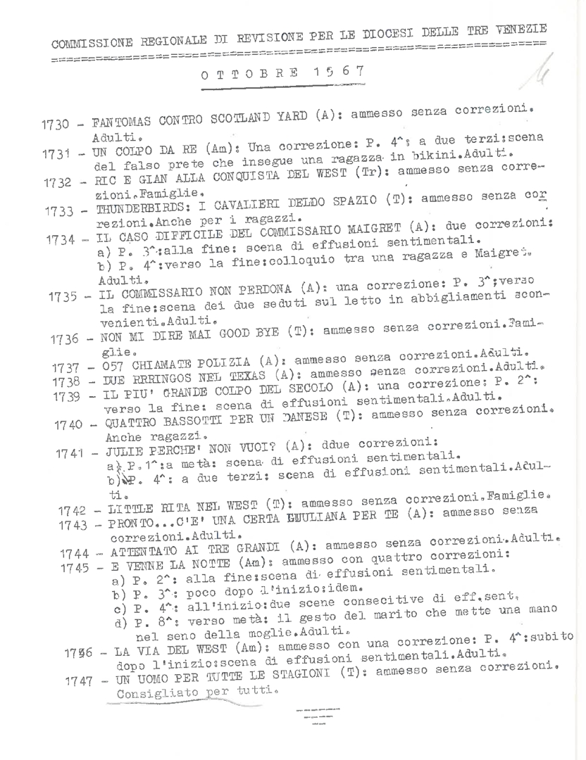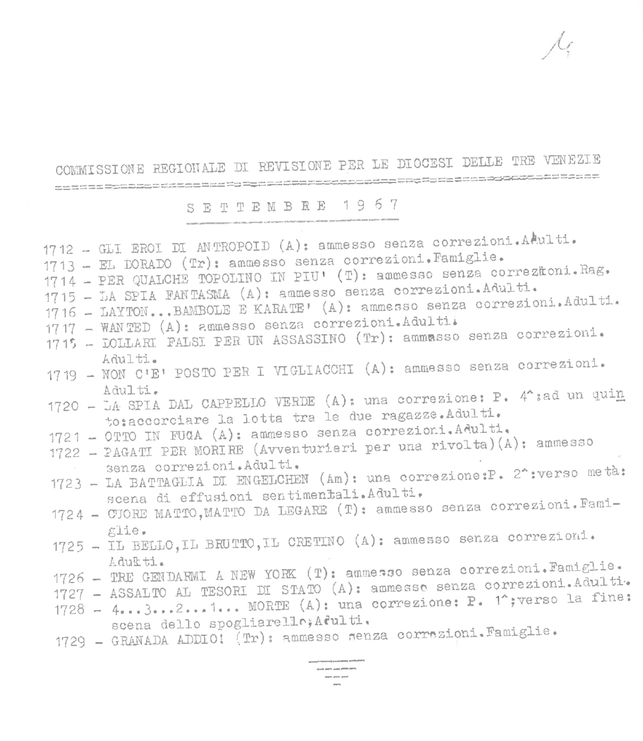 Classificazione di film, a cura della Commissione regionale di revisione per le diocesi delle Tre Venezie