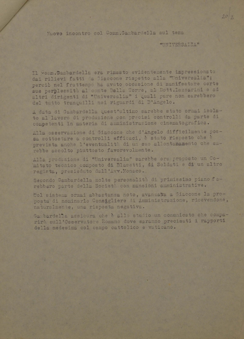 "Nuovo incontro col Comm. Gambardella sul tema Universalia"
