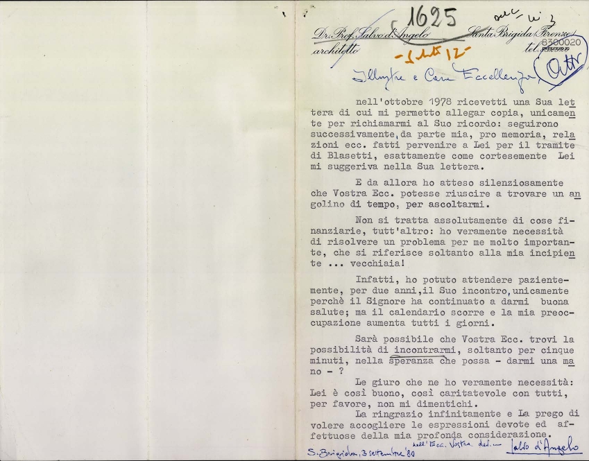 Lettera di Salvo D'Angelo all'on. Giulio Andreotti, presidente del consiglio dei ministri