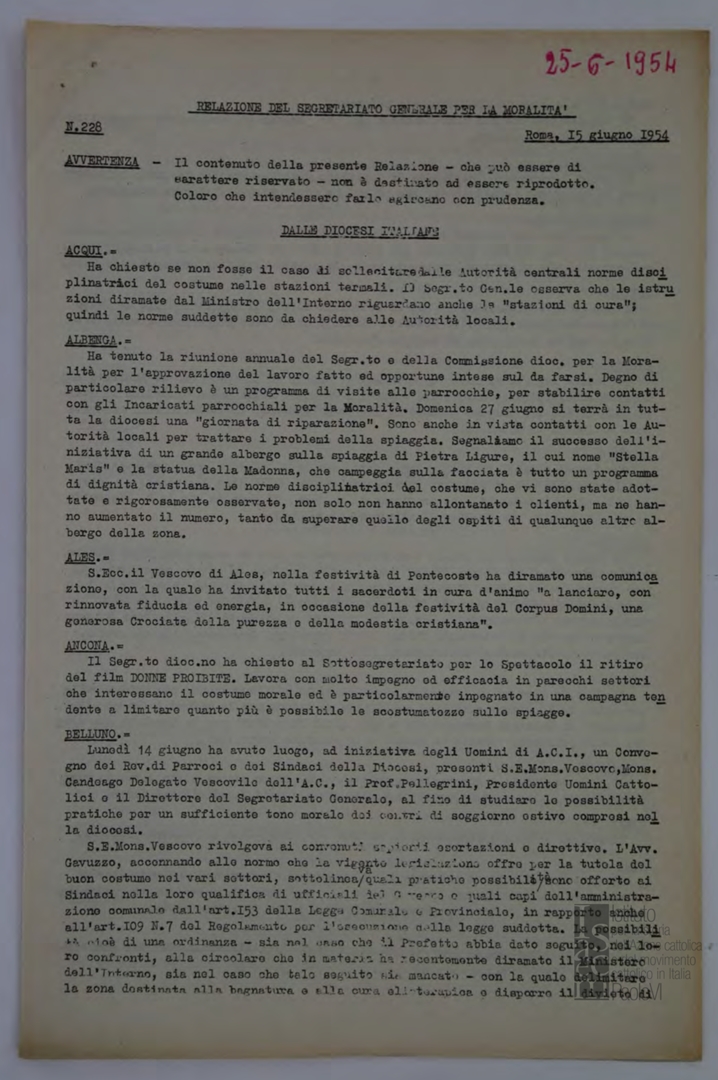 "Relazione del Segretariato Generale per la Moralità. Nr. 228"