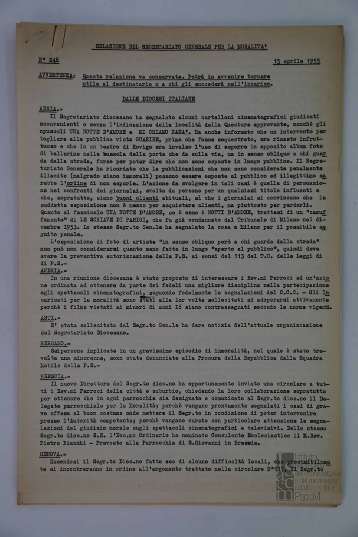 "Relazione del Segretariato Generale per la Moralità. Nr. 248"
