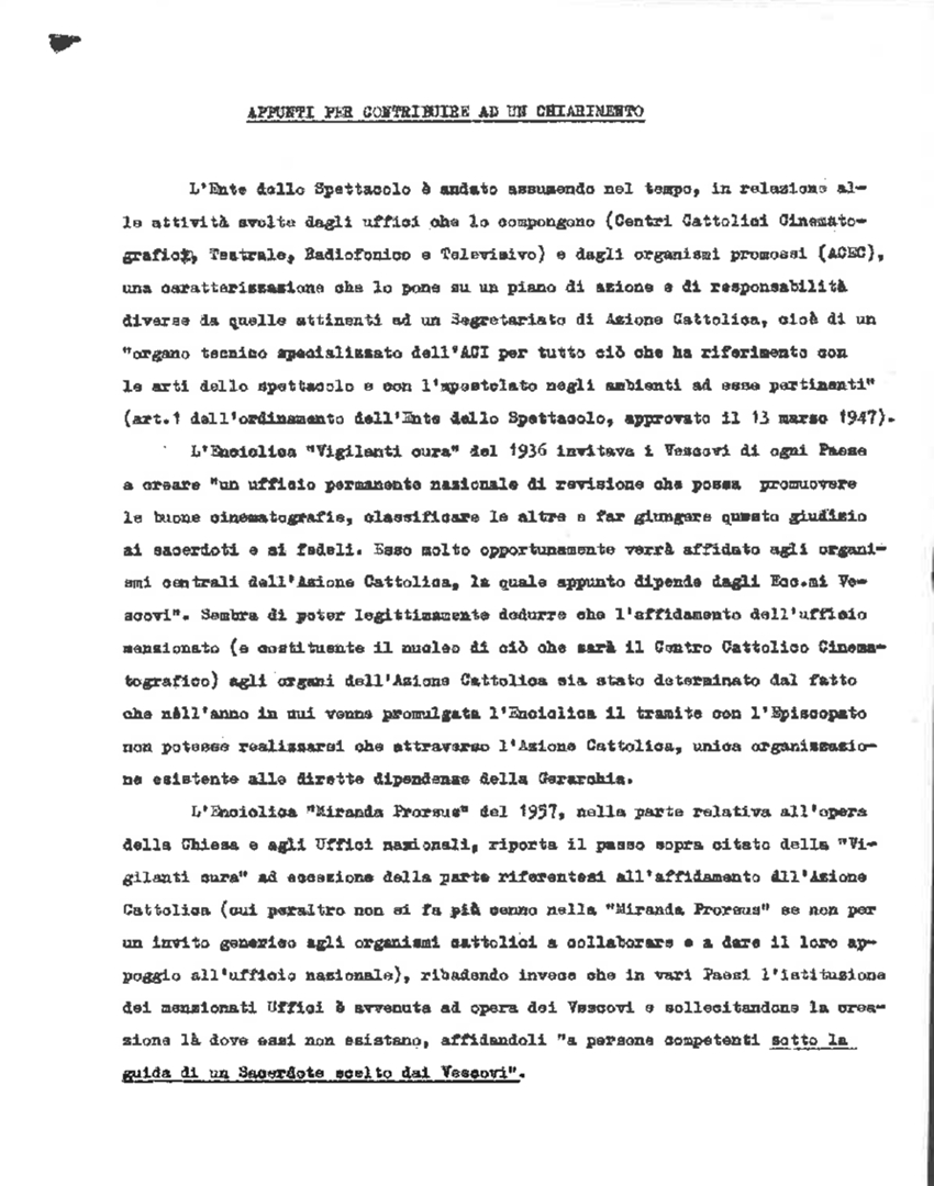 "Proposte conclusive dell'Ente dello spettacolo circa i criteri di giudizio delle classifiche morali dei film"