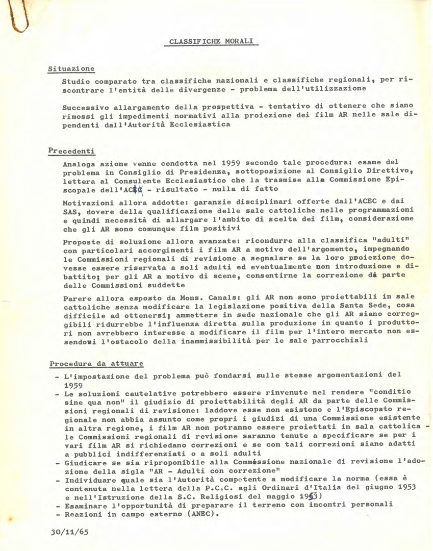 Verbale delle giornate di studio della Commissione nazionale di revisione del Centro cattolico cinematografico - CCC