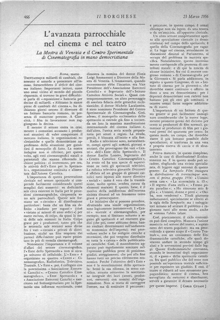 "L'avanzata parrocchiale nel cinema e nel teatro"
