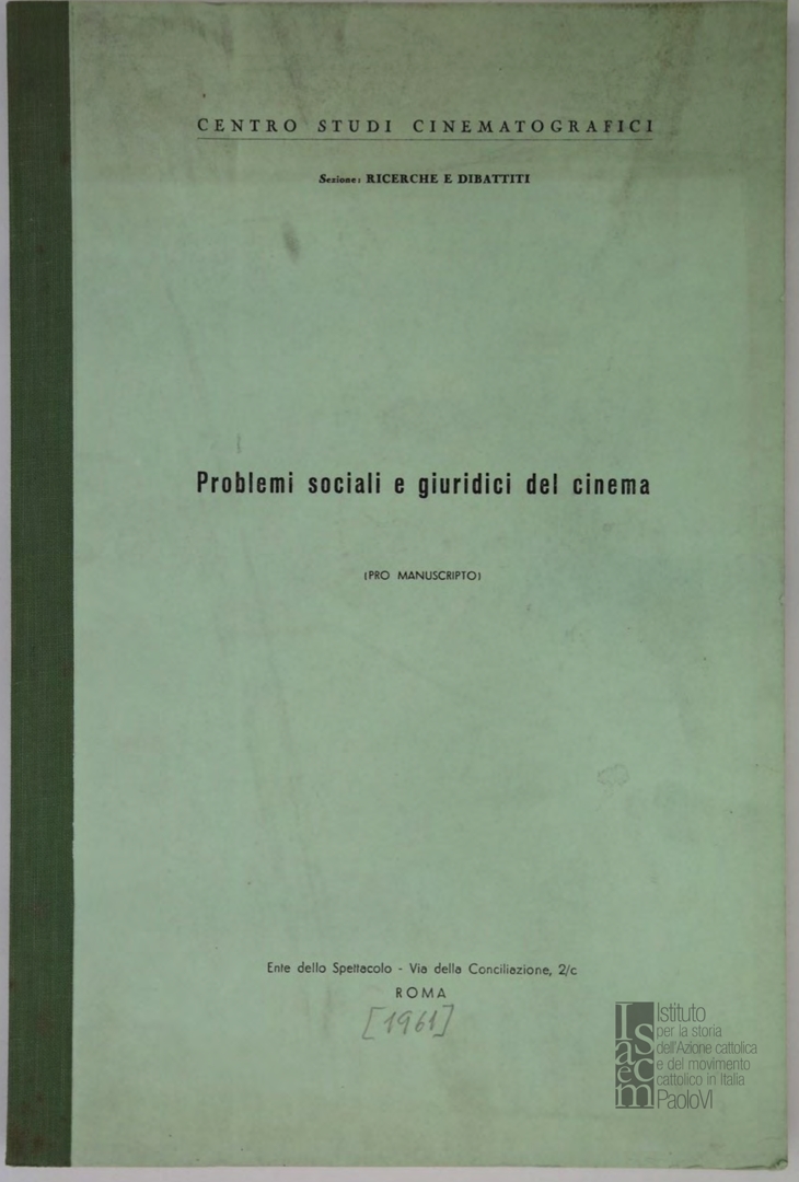 "Problemi sociali e giuridici del cinema", a cura del Centro studi cinematografici - CSC. Prima parte