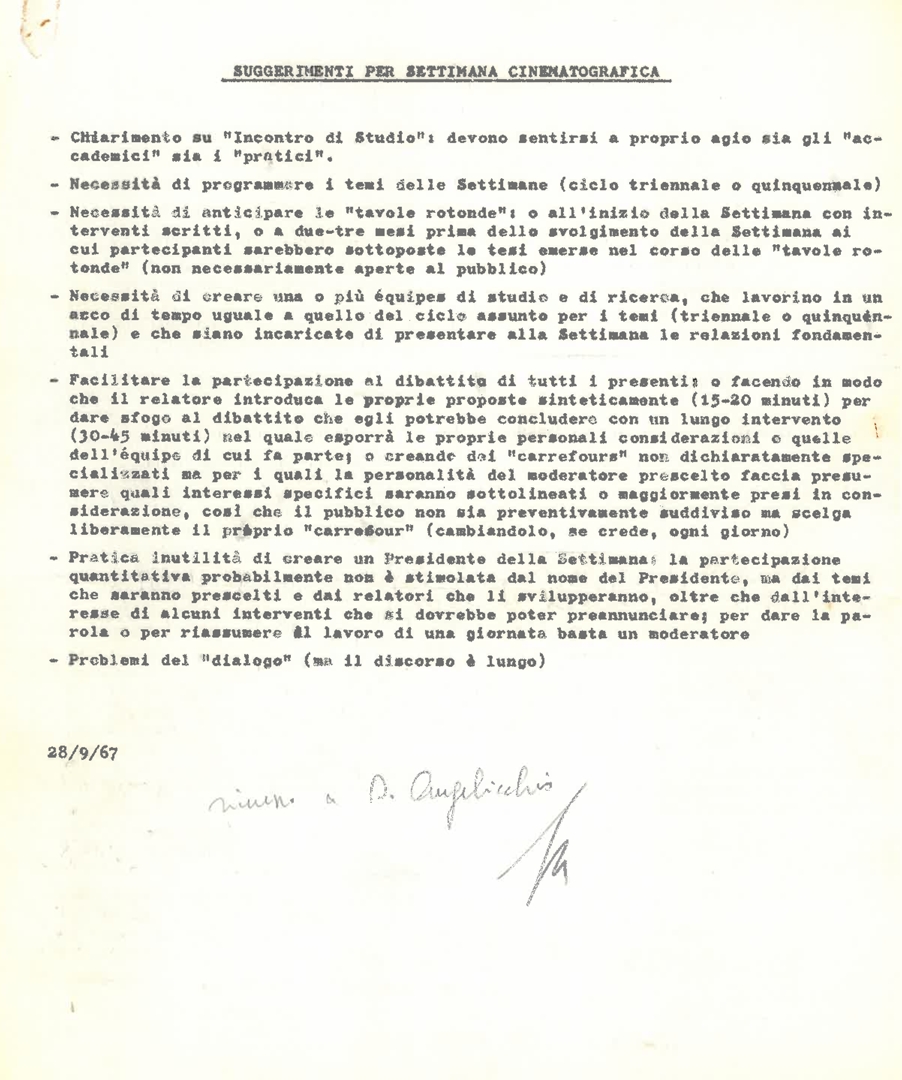 "Appunti per una nuova strutturazione dell'ordinamento delle settimane cinematografiche dei cattolici"