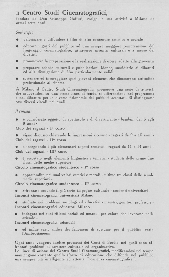 "Schema di statuto provvisorio del Movimento italiano culturale cinematografico - MICC"