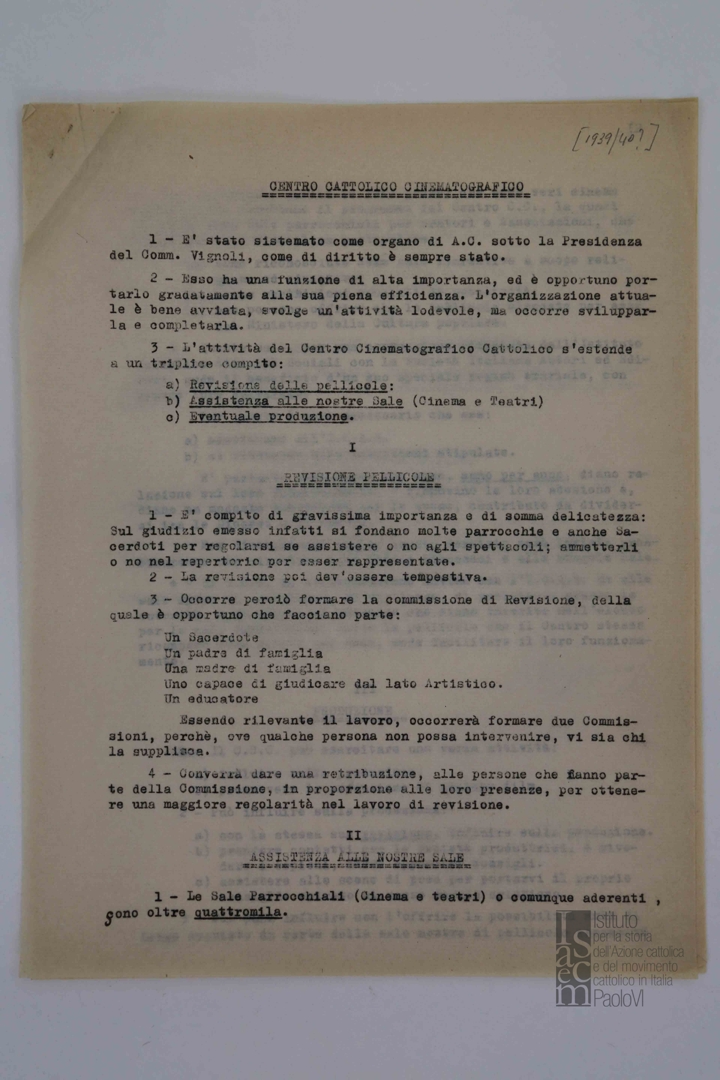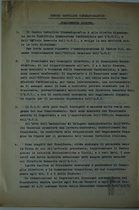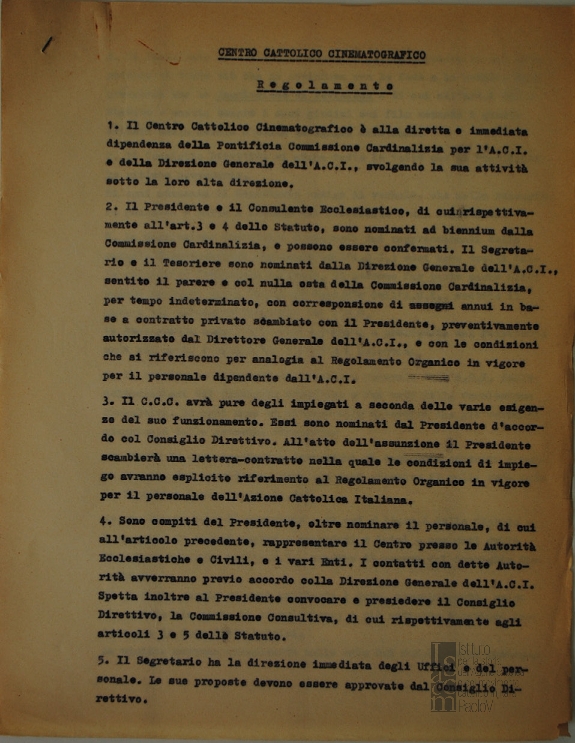 "Centro Cattolico Cinematografico. Regolamento interno"