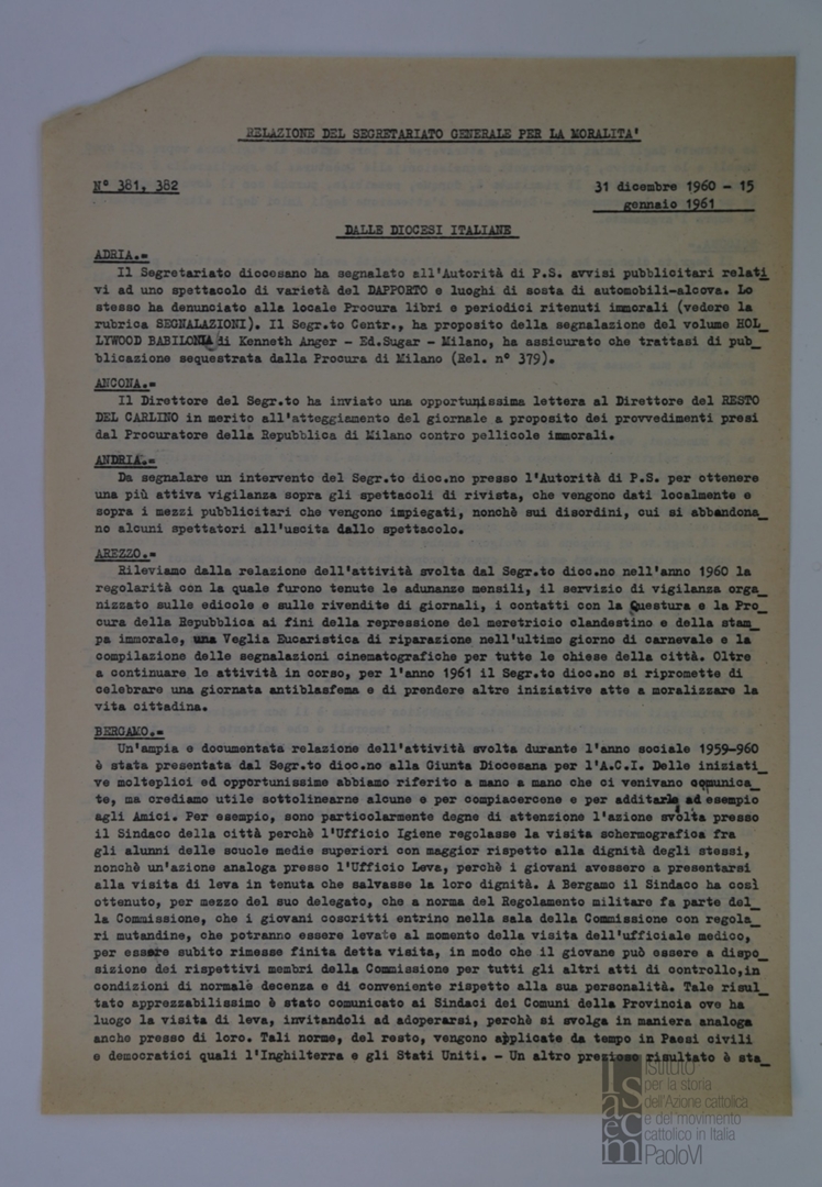 "Relazione del Segretariato Generale per la Moralità. Nr. 381-382"