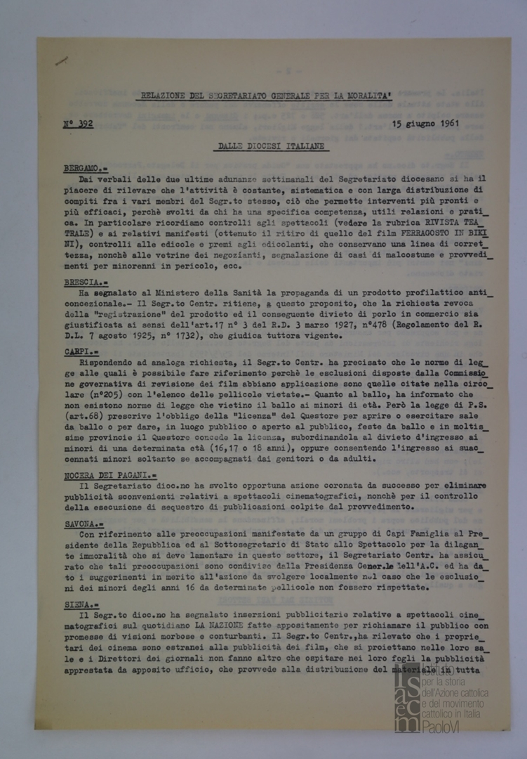 "Relazione del Segretariato Generale per la Moralità. Nr. 392"