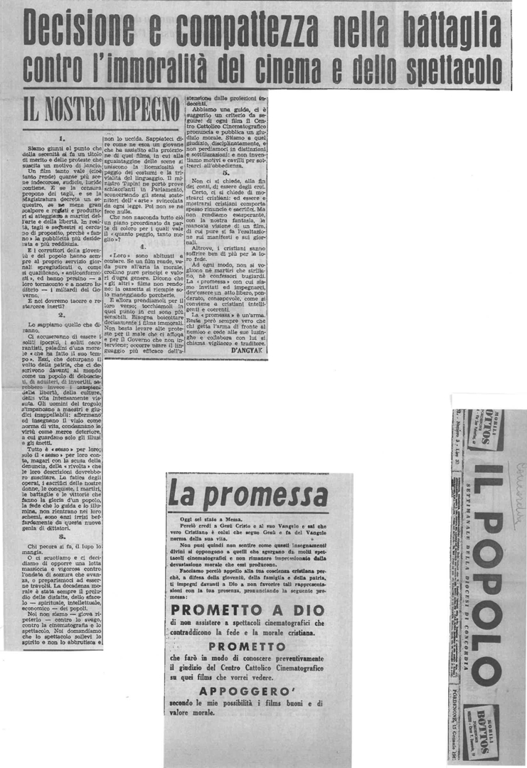"Decisione e compattezza nella battaglia contro l'immoralità del cinema e dello spettacolo"